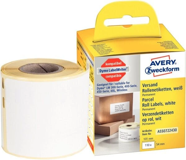 AVERY Zweckform Rollenetikett, 101 X 54 Mm, Permanent, Weiß, Ersetzt Dymo: S0722430