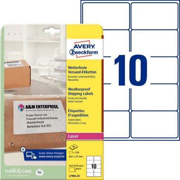 AVERY Zweckform Wetterfeste Versandetiketten, 99,1 X 139 Mm, Weiß, Laser S/w, Farblaser, Polyester