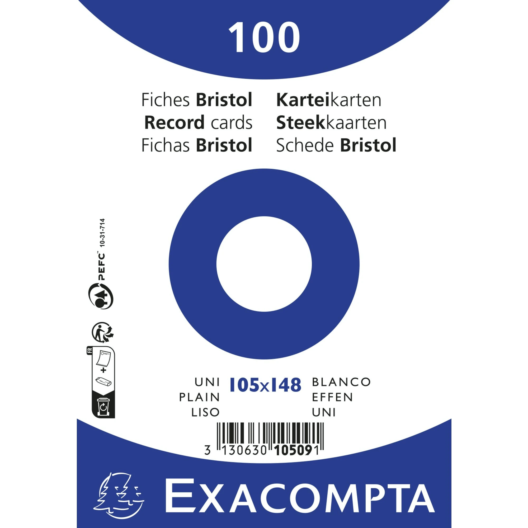 Exacompta 10509E 20x Karteikarten, 100 Stück, ungelocht, DIN A6 105x148mm, 205g, blanko – Weiß