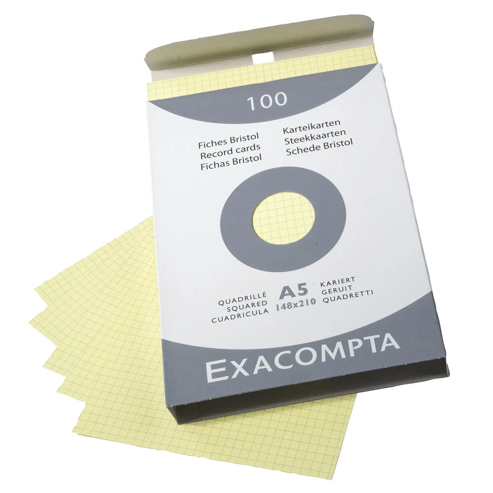 Exacompta 13228E 10x Karteikarten kariert DIN A5 100 St – mit Faltschachtel – Gelb