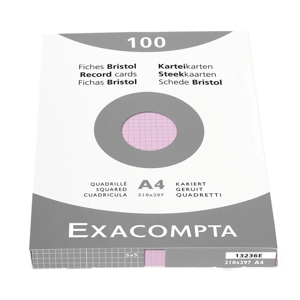 Exacompta 13236E 10x Karteikarten kariert DIN A4 100 St – mit Faltschachtel – Rosa