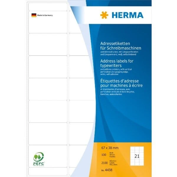 Herma Adressetiketten Für Schreibmaschinen 67 X 30 Mm, 540 Etiketten, Weiß, Permanent Haftend, 27 Stück/Blatt, DIN A4