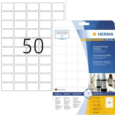 HERMA Etikett 8628 96,5×42,3mm weiß 120 St./Pack. Garantiert staufrei und high-speed-fähig durch extra starken Spezialverbund. Störungsfreie Verarbeitung durch Rundum-Sicherheitskante und optimale Planlage. Hoher Weißegrad und gleichmäßige Oberfläche für beste Druckergebnisse. Kostenlose Softwarelösungen: www.herma.de/software