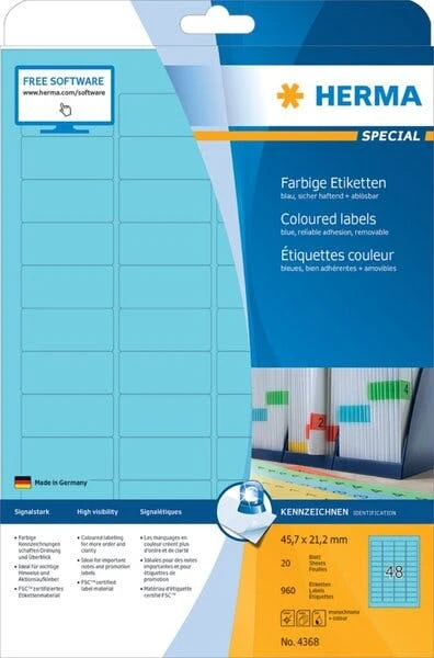 Herma Farbige Etiketten 45,7 X 21,2 Mm, 960 Etiketten, Blau, Ablösbar