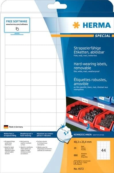 Herma Folien-Etiketten, 66,0 X 33,8 Mm, Weiß, Matt, Wetterfest, Extrem Stark Haftend, Ablösbar, 1 Pack = 20 Bl. = 480 Stück