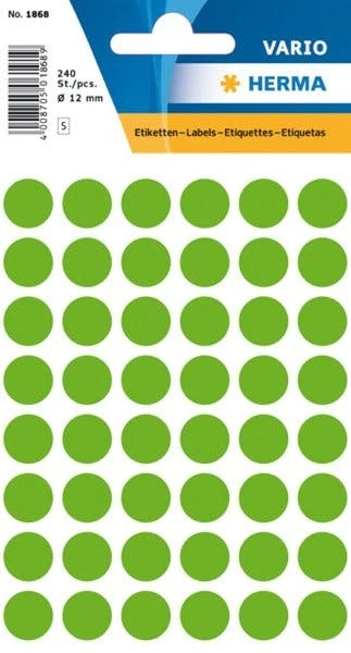 Herma Markierungspunkte Ø 13 Mm, Leuchtgrün, 240 Etiketten, Permanent Haftend, Für Handbeschriftung