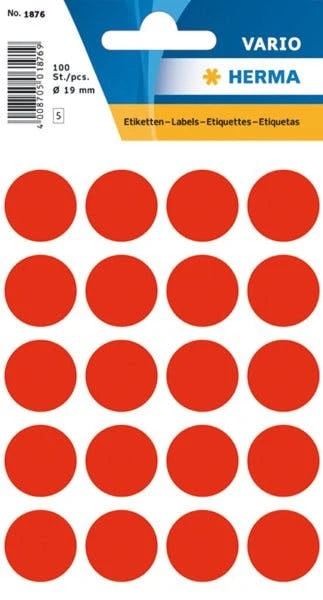 Herma Markierungspunkte Ø 19 Mm, Leuchtrot, 100 Etiketten, Permanent Haftend, Für Handbeschriftung