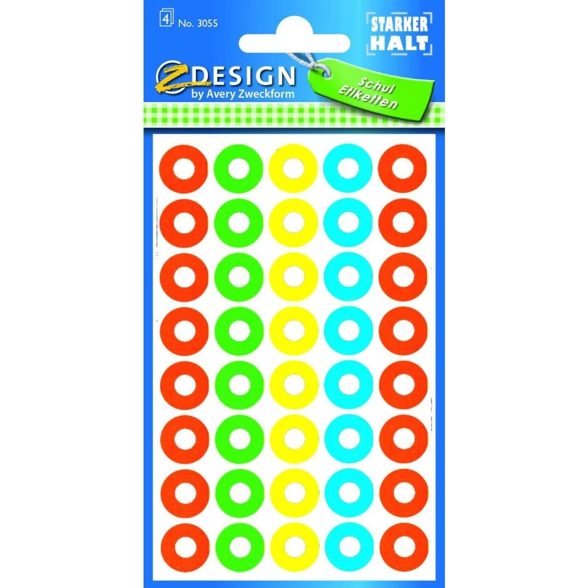 Verstärkungsringe · 78×120 mm · rot grün gelb blau · 4 Blatt / 160 Stück · Selbstklebende gestanzte Folie, reißfest. Zum Verstärken von ausgerissenen Lochungen.