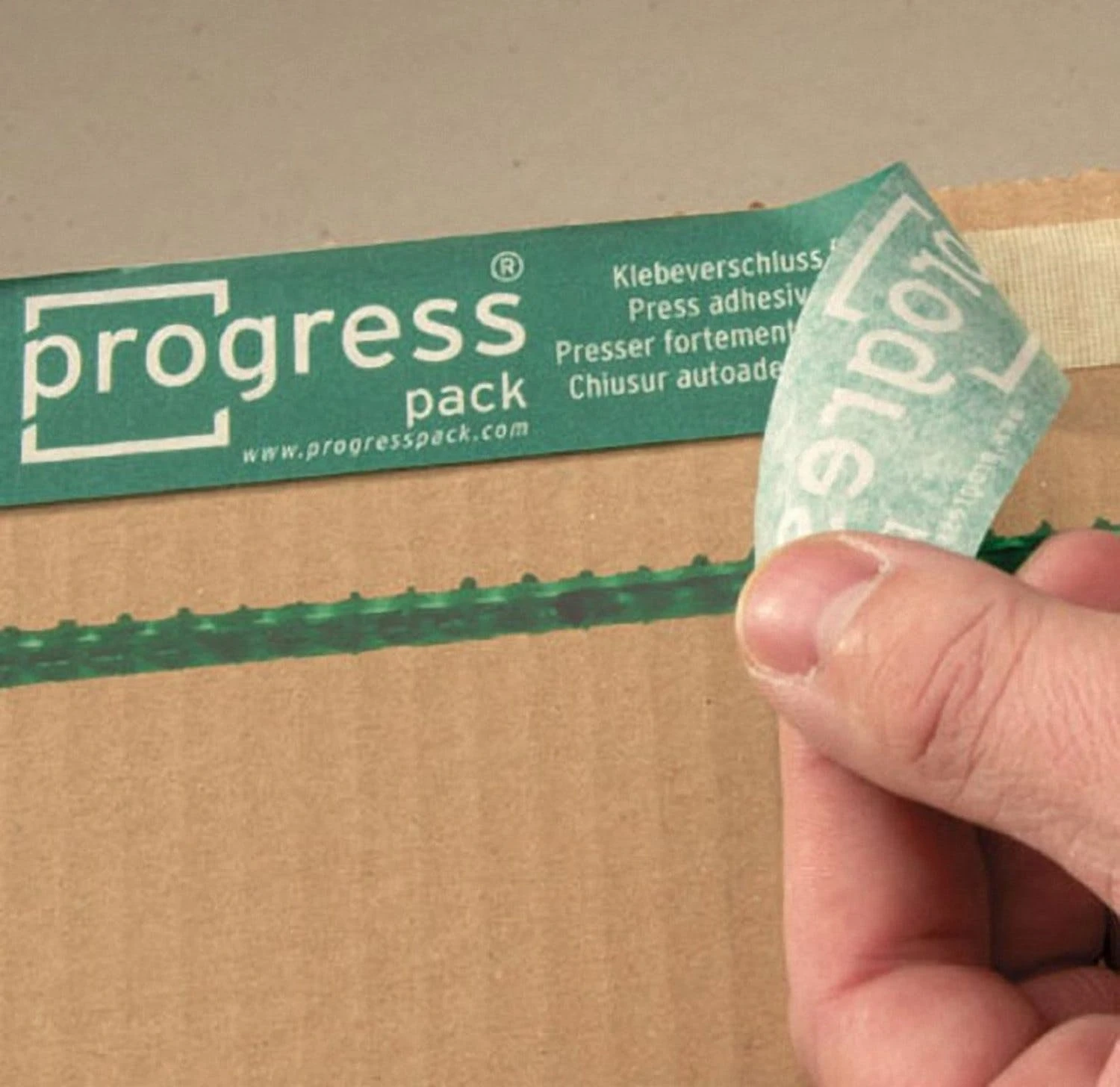 progressPACK FIXKARTON braun mit Automatikboden und Höhenriller 305/230/70-160 und SK-Verschluß und Aufreißfaden
