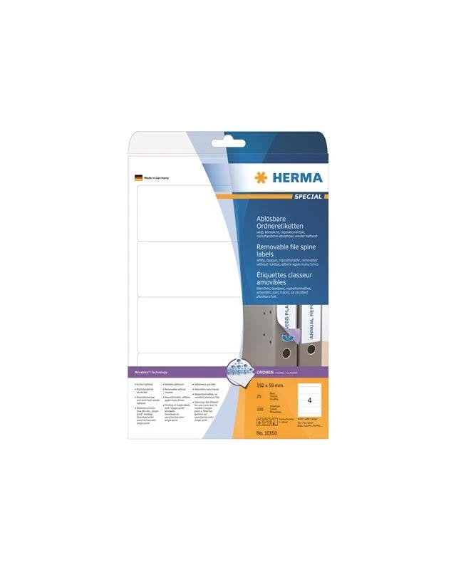 HERMA Special Selbstklebende entfernbare matte lichtdichte Aktenordneretiketten aus Papier weiß 192 x 59 mm 1 Etiketten 25 Bogen x 4