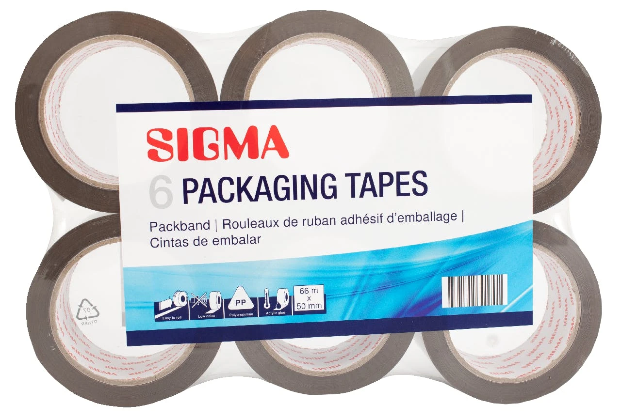 Das SIGMA Paketband hat jeweils eine Länge von 66 m. Die Lieferung erfolgt im 6er-Set und die Farbe ist transparent.